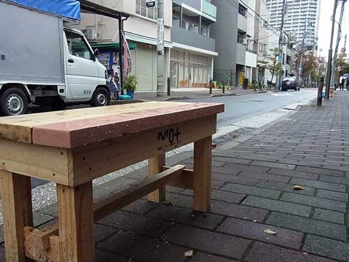 事例紹介)東京都現代美術館=清澄白河駅から商店街の案山子やイス