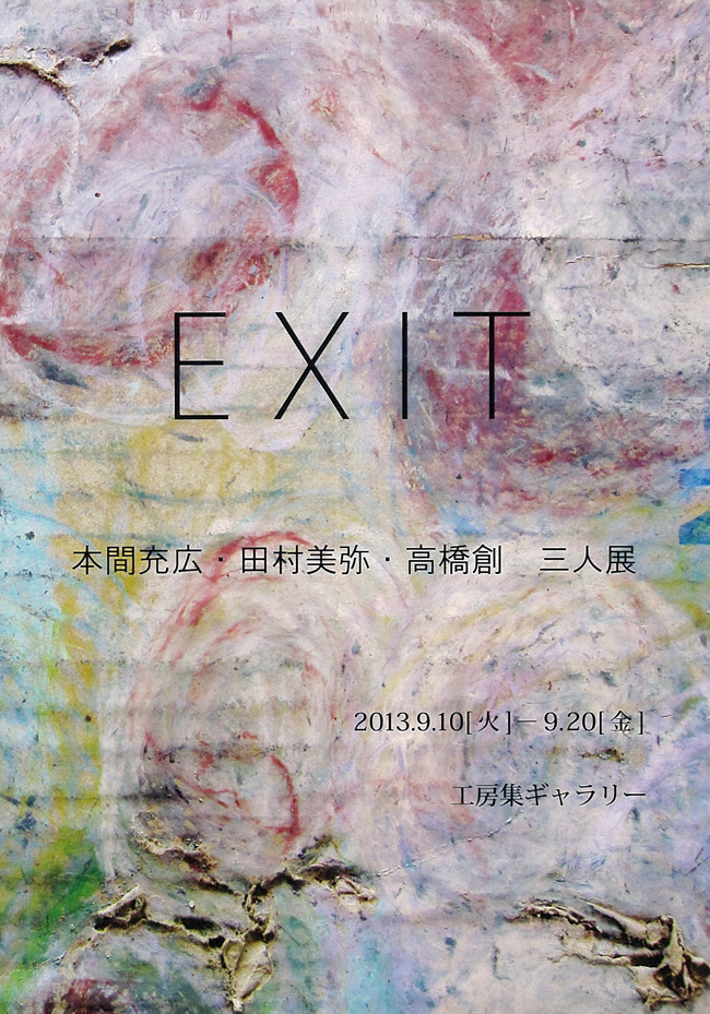 タイトルは「EXIT」。出口。 同法人・太陽の里のPOPOというグループに所属している 本間充広、田村美弥、高橋創による三人展です。 これまで、なかなか日の目を見ることはなかったけれども、 毎日毎日、同じイメージをひたすら描き続けている3人にスポットを当てます。 (工房集ホームページより) 詳細はこちら≫