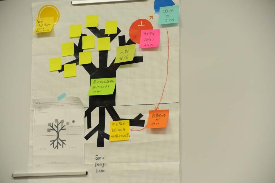 木をモチーフに見立てて、参加者それぞれが自身の在り方を整理するワークショップを実施。